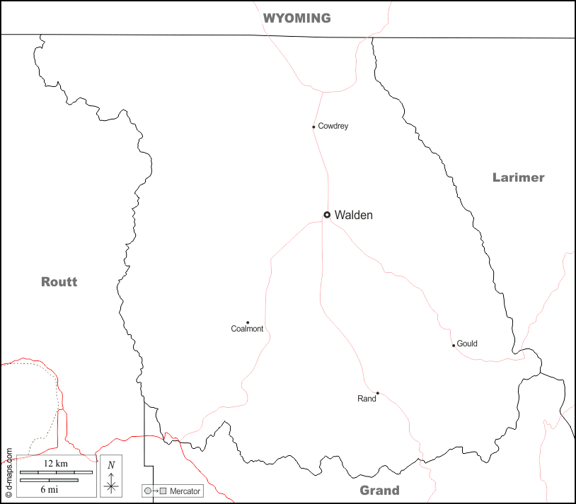 d-maps > United States of America (USA) > Colorado > Jackson County > boundaries, main cities, roads, names, white