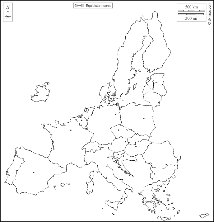 d-maps > Europe > European Union > boundaries, outline, states, capitals, white