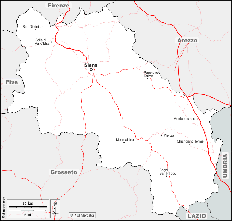 d-maps > Europe > Italy > Siena > boundaries, main cities, roads, names