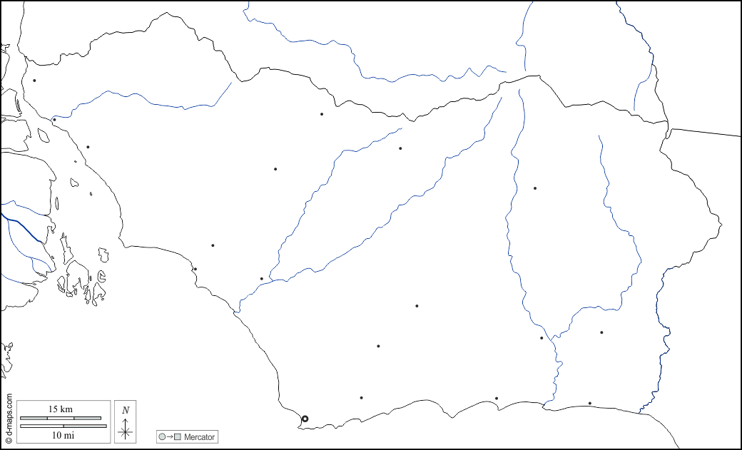 d-maps > Americas > Uruguay > Colonia > boundaries, hydrography, main cities, white