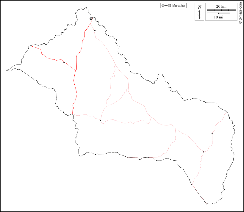 d-maps > Americas > Uruguay > Rivera > outline, main cities, roads, white