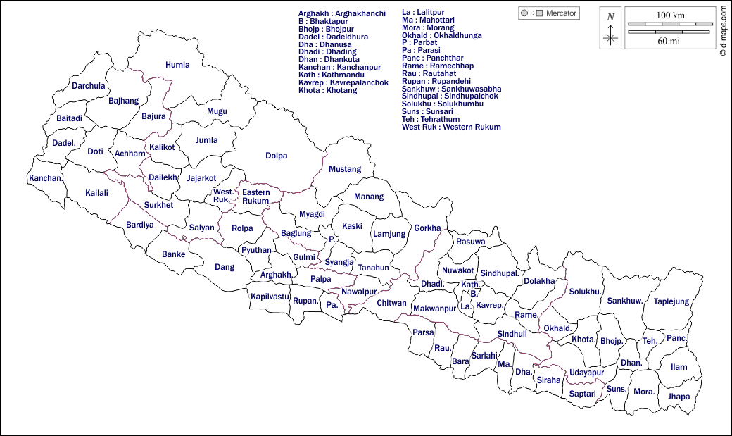 d-maps > Asia > Nepal > outline, districts, names, white