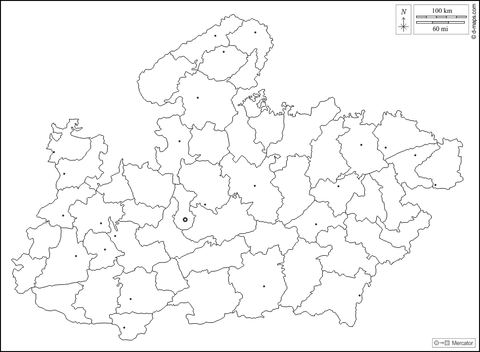d-maps > Asia > India > Madhya Pradesh > outline, districts, main cities, white