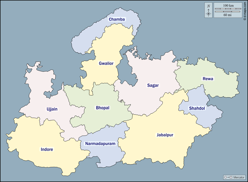 d-maps > Asia > India > Madhya Pradesh > outline, divisions, names, color