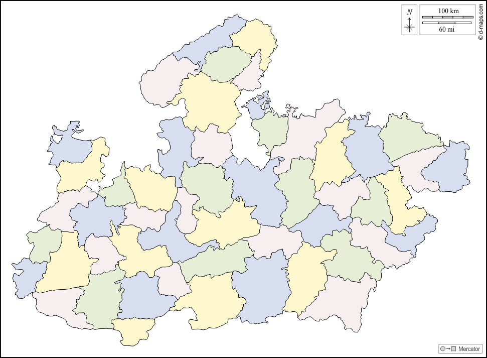 d-maps > Asia > India > Madhya Pradesh > outline, districts, color, white