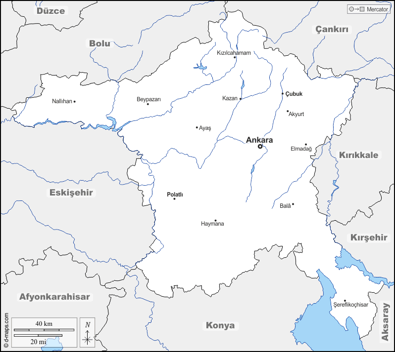 d-maps > Asia > Turkey > Ankara > boundaries, hydrography, main cities, names