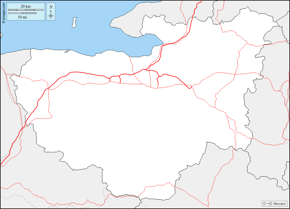 d-maps > Asia > Turkey > Bursa > boundaries, roads