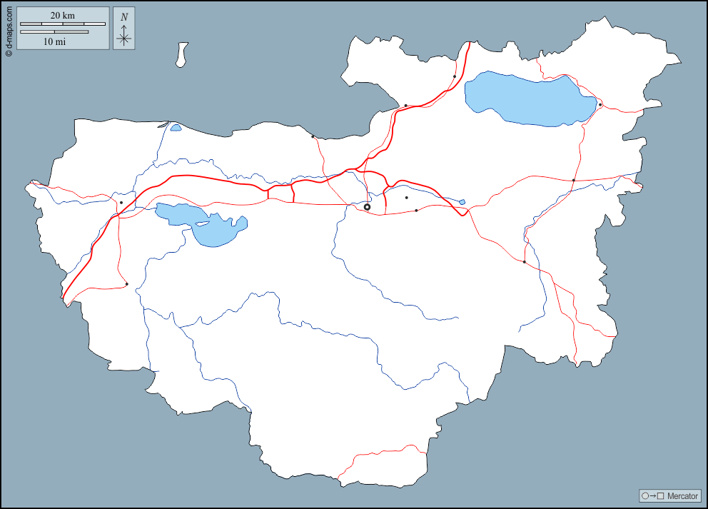 d-maps > Asia > Turkey > Bursa > outline, hydrography, main cities, roads