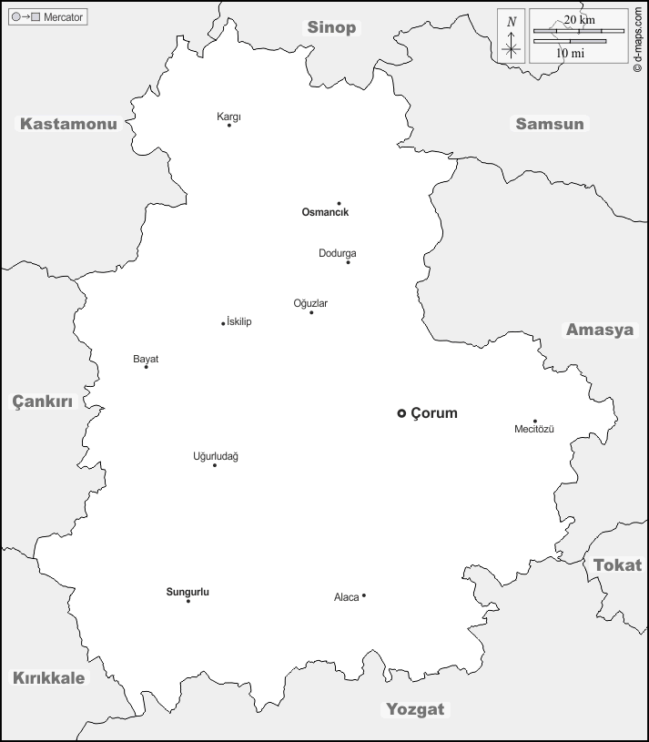 d-maps > Asia > Turkey > Çorum > boundaries, main cities, names