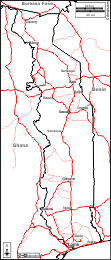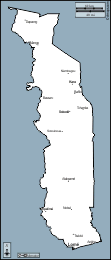d-maps > Africa > Togo > Togo > outline, prefectures, names, white