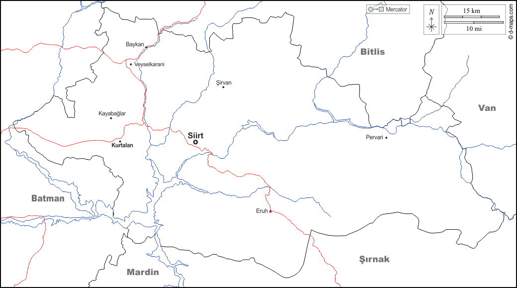 d-maps > Asia > Turkey > Siirt > boundaries, hydrography, main cities, roads, names, white
