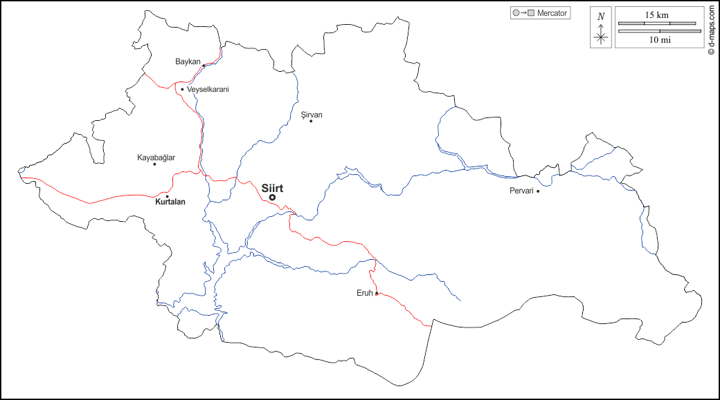 d-maps > Asia > Turkey > Siirt > outline, hydrography, main cities, roads, names, white