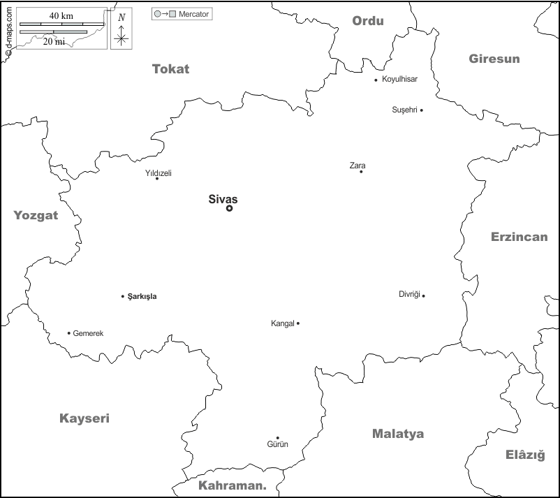 d-maps > Asia > Turkey > Sivas > boundaries, main cities, names, white