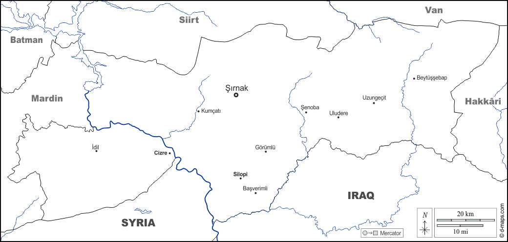 d-maps > Asia > Turkey > Şırnak > boundaries, hydrography, main cities, names, white