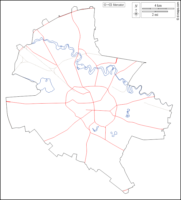 d-maps > Europe > Romania > Bucharest > outline, hydrography, roads, white
