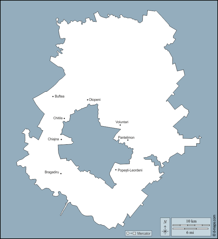 d-maps > Europe > Romania > Ilfov > outline, main cities, names