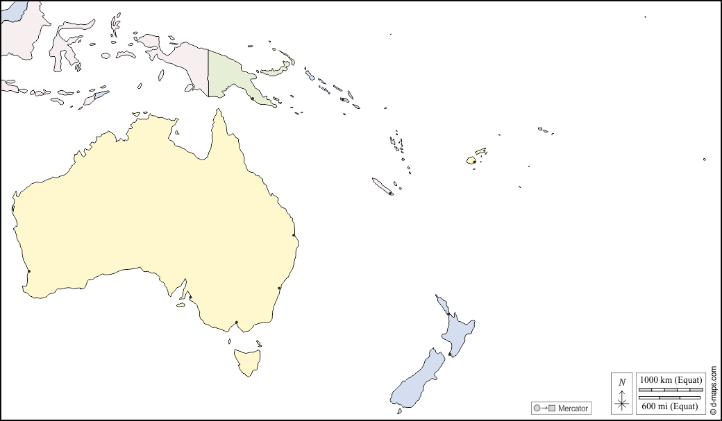 d-maps > Oceania > Thierry Area > states, main cities, color, white