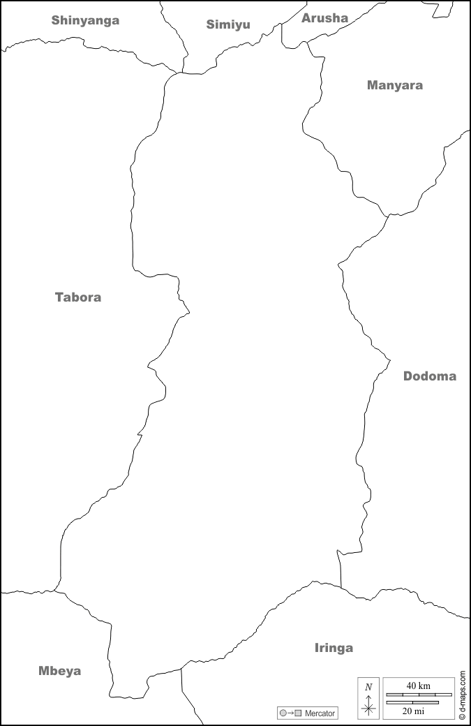 d-maps > Africa > Tanzania > Singida > boundaries, names, white
