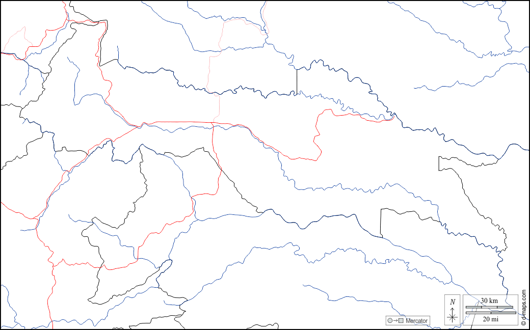 d-maps > Americas > Ecuador > Sucumbíos > boundaries, hydrography, roads, white