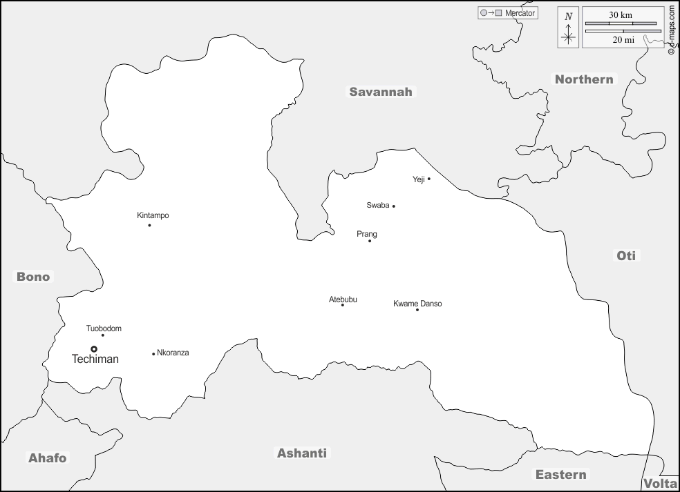 d-maps > Africa > Ghana > Bono East > boundaries, main cities, names