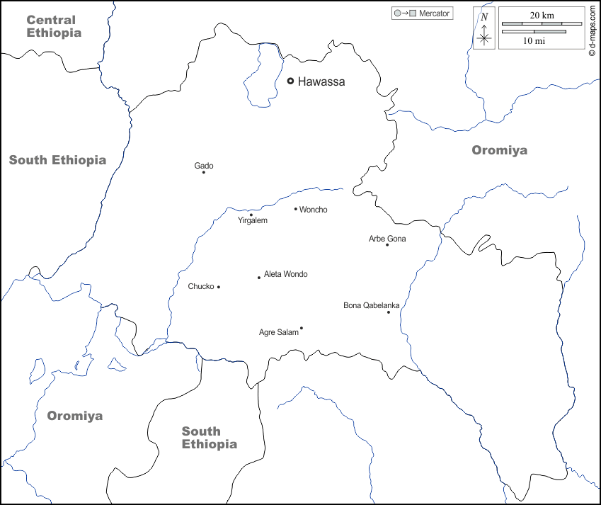 d-maps > Africa > Ethiopia > Sidama > boundaries, hydrography, main cities, names, white