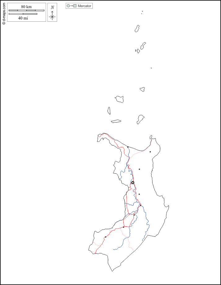 d-maps > Asia > Philippines > Cagayan > outline, hydrography, main cities, roads, white