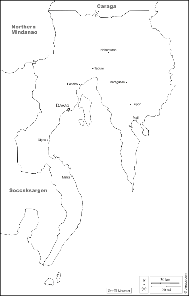 d-maps > Asia > Philippines > Davao > boundaries, main cities, names, white