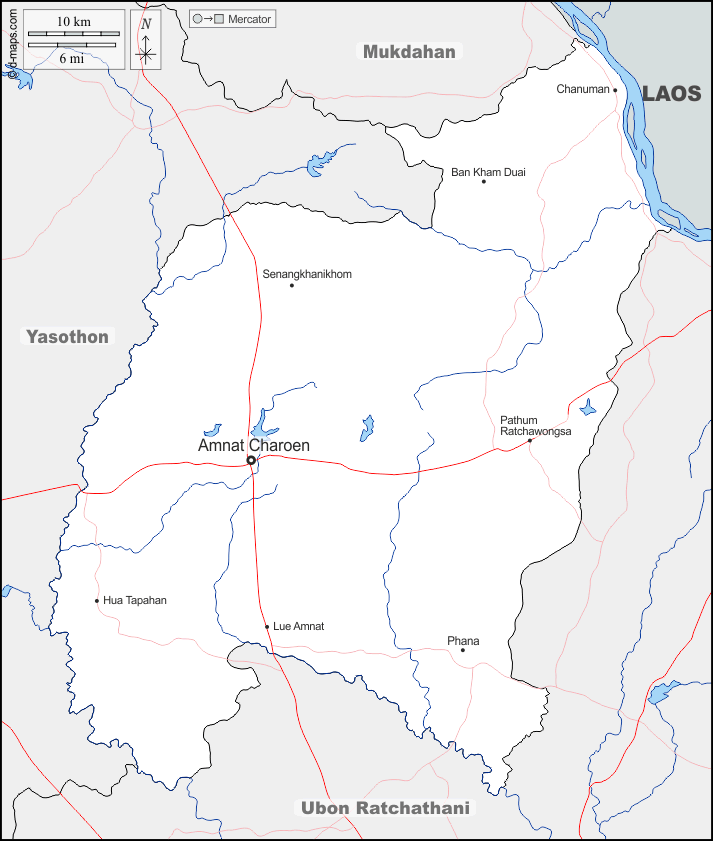d-maps > Asia > Thaïlande > Amnat Charoen > boundaries, hydrography, main cities, roads, names