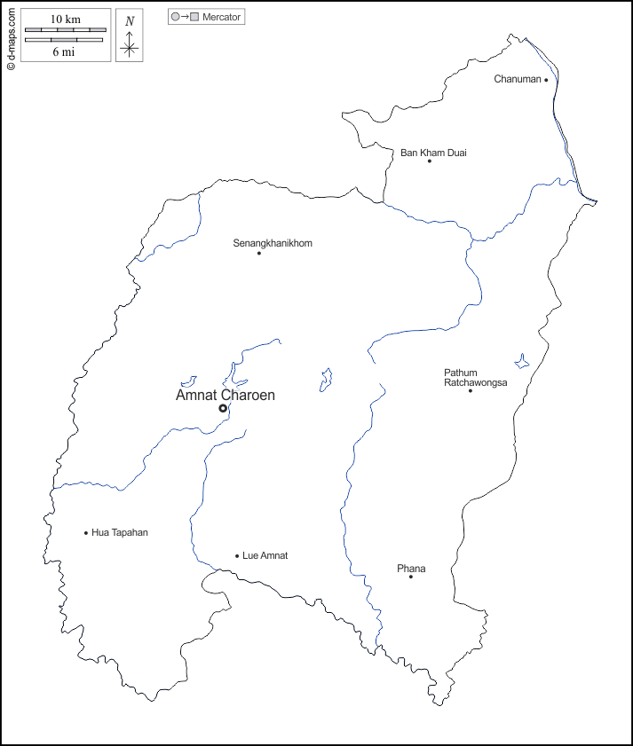 d-maps > Asia > Thaïlande > Amnat Charoen > outline, hydrography, main cities, names, white