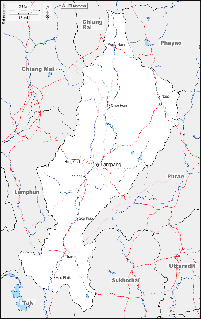 d-maps > Asia > Thaïlande > Lampang > boundaries, hydrography, main cities, roads, names