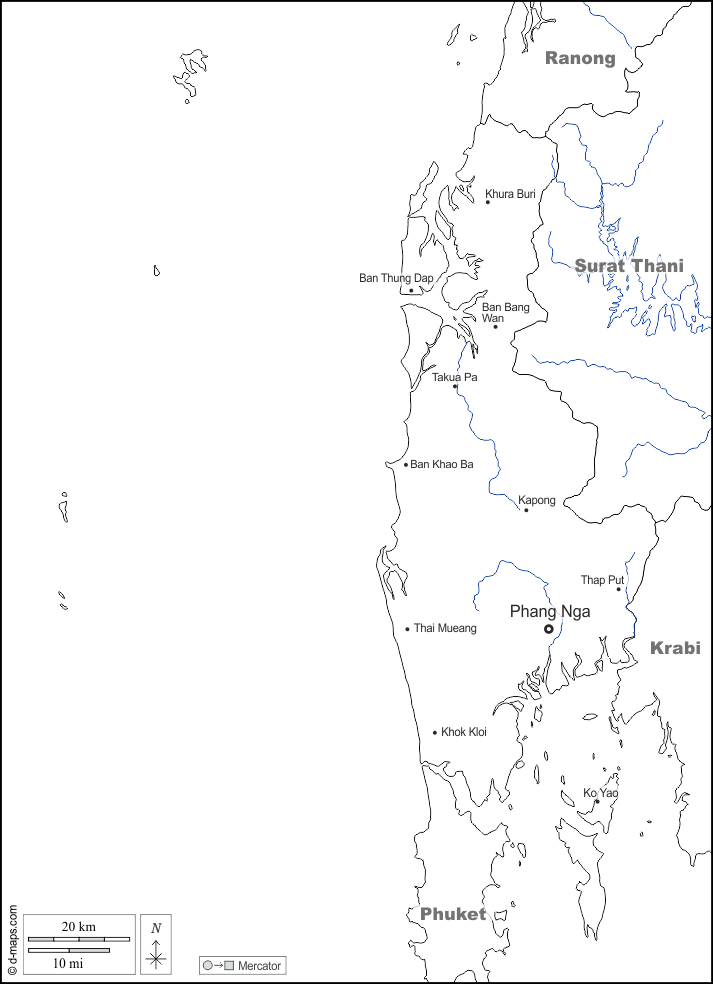 d-maps > Asia > Thaïlande > Phang Nga > boundaries, hydrography, main cities, names, white