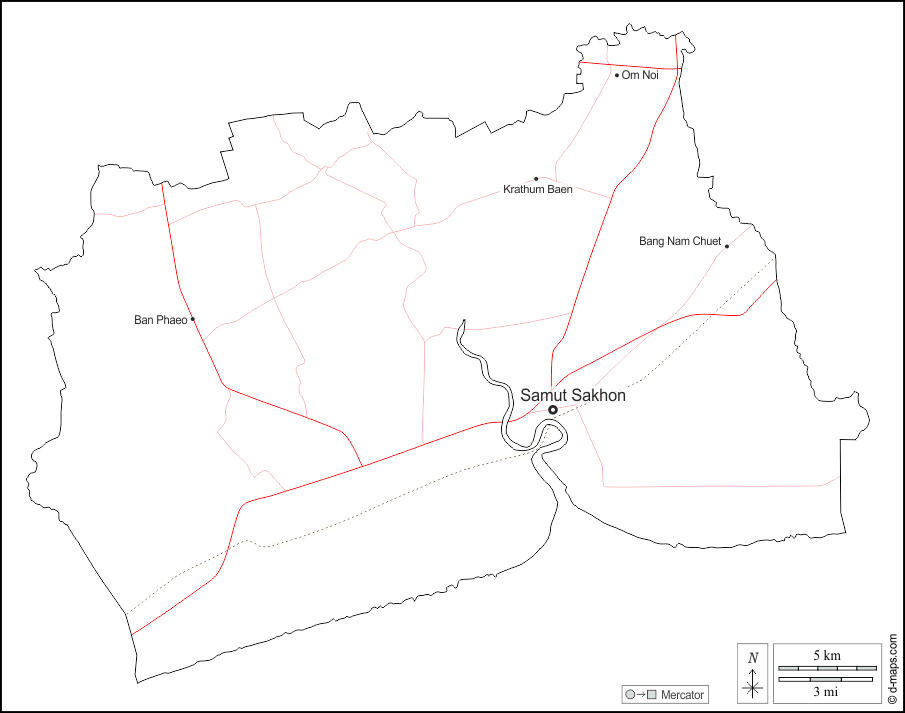 d-maps > Asia > Thaïlande > Samut Sakhon > outline, main cities, roads, names, white