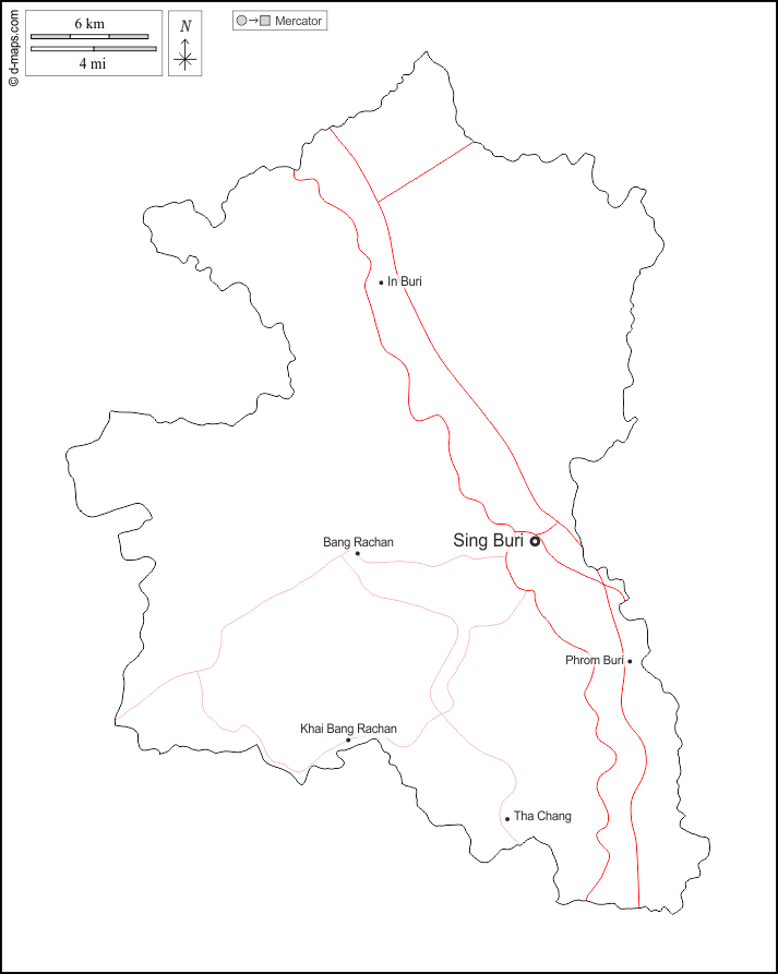 d-maps > Asia > Thaïlande > Sing Buri > outline, main cities, roads, names, white