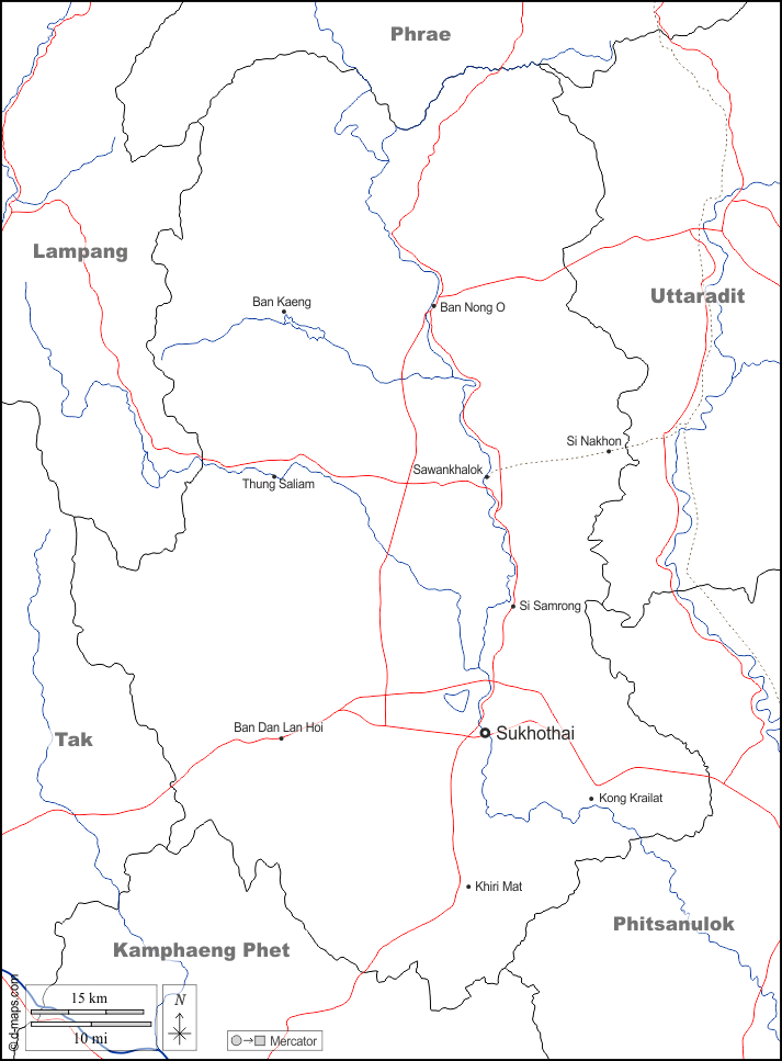 d-maps > Asia > Thaïlande > Sukhothai > boundaries, hydrography, main cities, roads, names, white