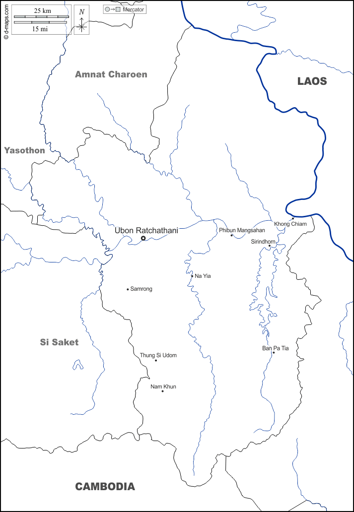 d-maps > Asia > Thaïlande > Ubon Ratchathani > boundaries, hydrography, main cities, names, white
