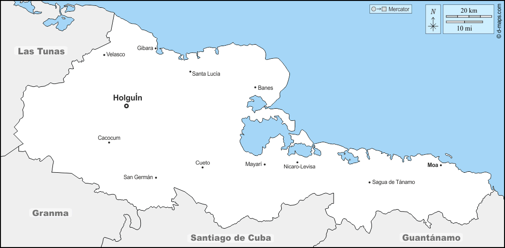 d-maps > Americas > Cuba > Holguín Province > boundaries, main cities, names