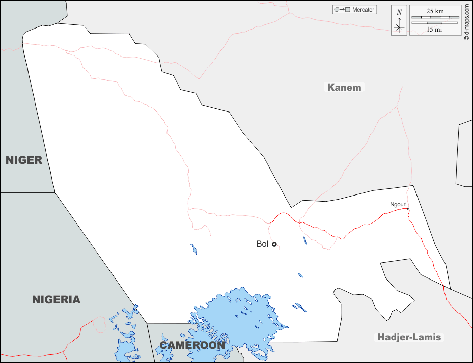 d-maps > Africa > Chad > Lac > boundaries, hydrography, main cities, roads, names