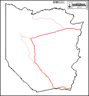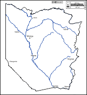 d-maps > Africa > Zambia > Western > boundaries, hydrography, main cities, roads, names, white
