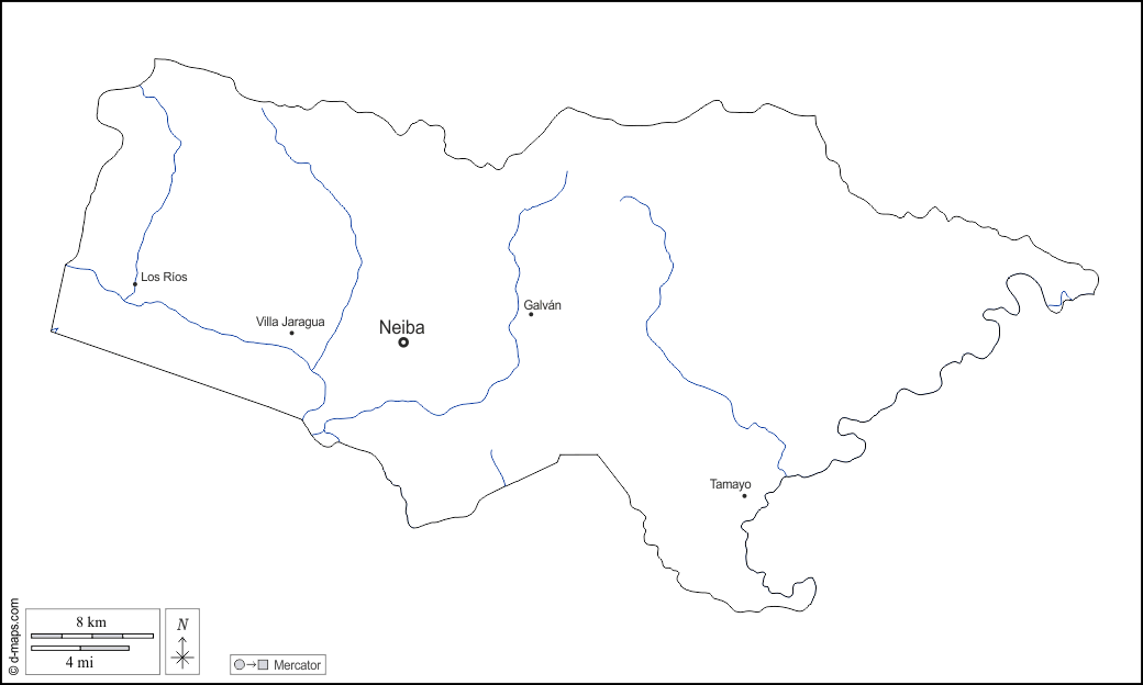 d-maps > Americas > Dominican Republic > Baoruco > outline, hydrography, main cities, names, white
