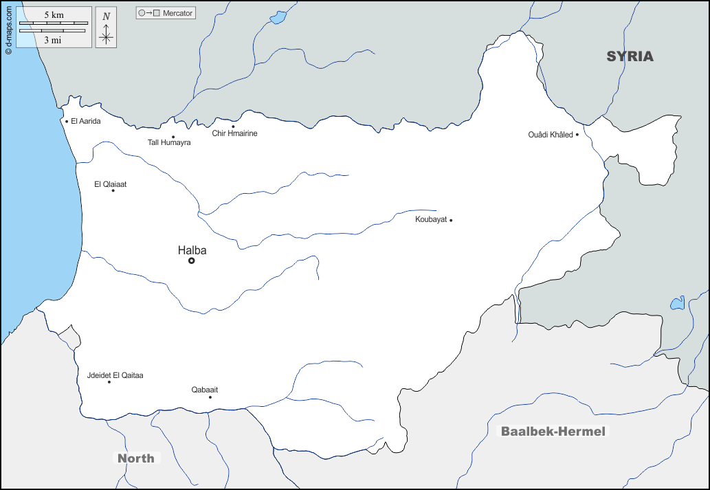 d-maps > Asia > Lebanon > Akkar > boundaries, hydrography, main cities, names
