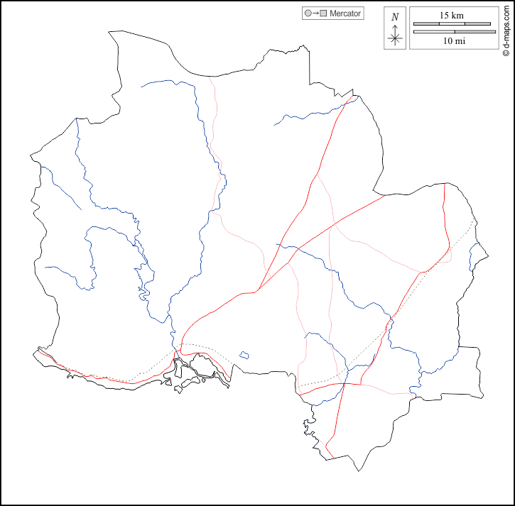d-maps > Asia > Cambodia > Kampot Province > outline, hydrography, roads, white