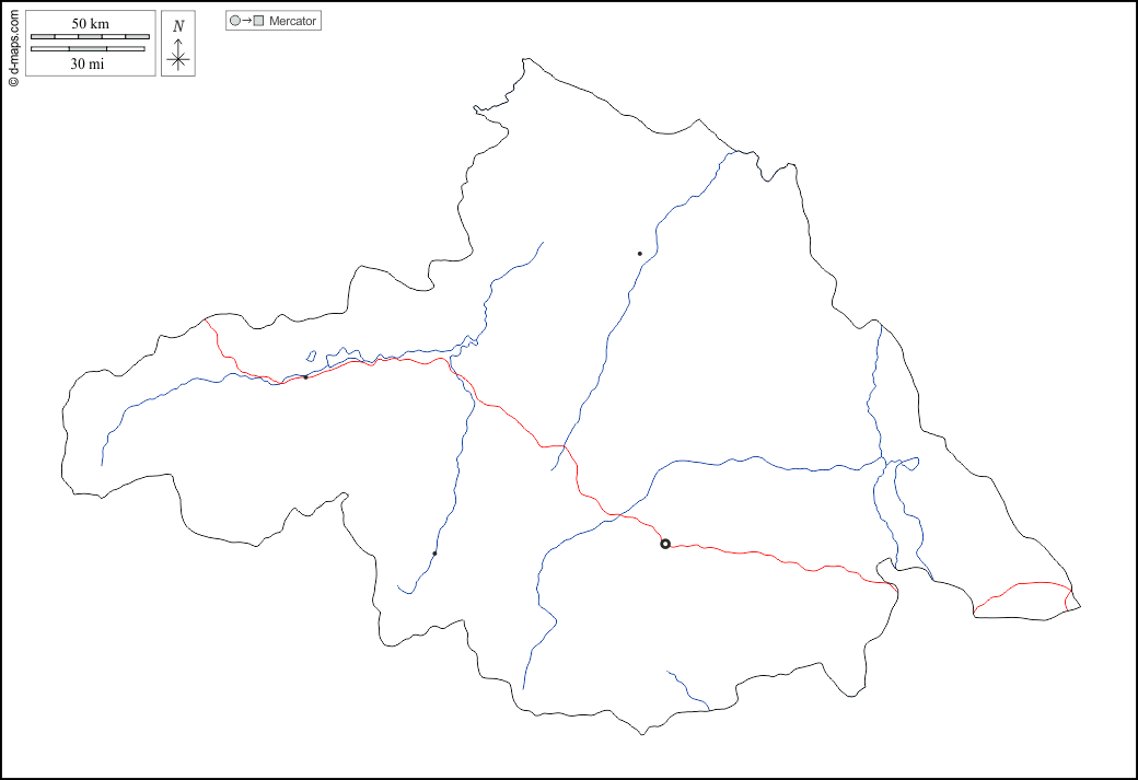 d-maps > Asia > Mongolia > Arkhangai > outline, hydrography, main cities, roads, white