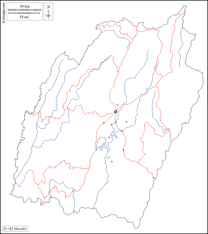 d-maps > Asia > India > Manipur > outline, hydrography, main cities, roads, white