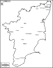 d-maps > Asia > India > Tamil Nadu > outline, districts, names, white