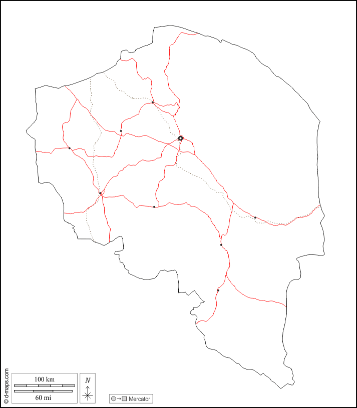 d-maps > Asia > Iran > Kermanshah > outline, main cities, roads, white