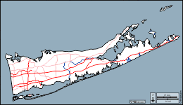 d-maps > United States of America (USA) > New York > Suffolk County > outline, hydrography, main cities, roads, names, white