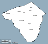d-maps > United States of America (USA) > Pennsylvania > Lancaster County > outline, main cities, roads, names, white