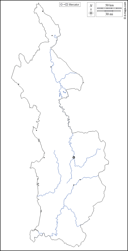 Americas > Colombia > Chocó Department > outline, hydrography, main cities, white