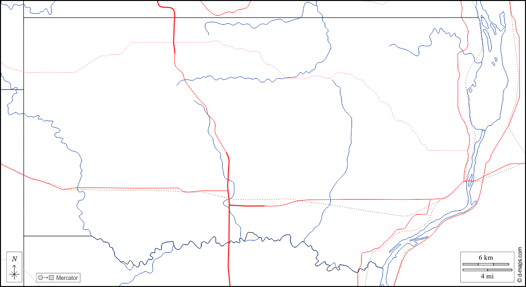 d-maps > United States of America (USA) > Iowa > Clinton County > boundaries, hydrography, roads, white