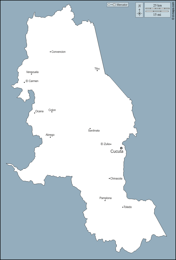 d-maps > Americas > Colombia > Norte de Santander Department > outline, main cities, names